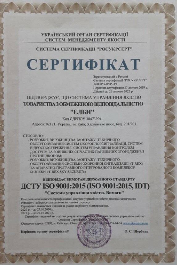 Ціль компанії полягає в забезпеченні необхідного рівня безпеки наших об'єктів з використанням тільки найсучаснішого обладнання.
