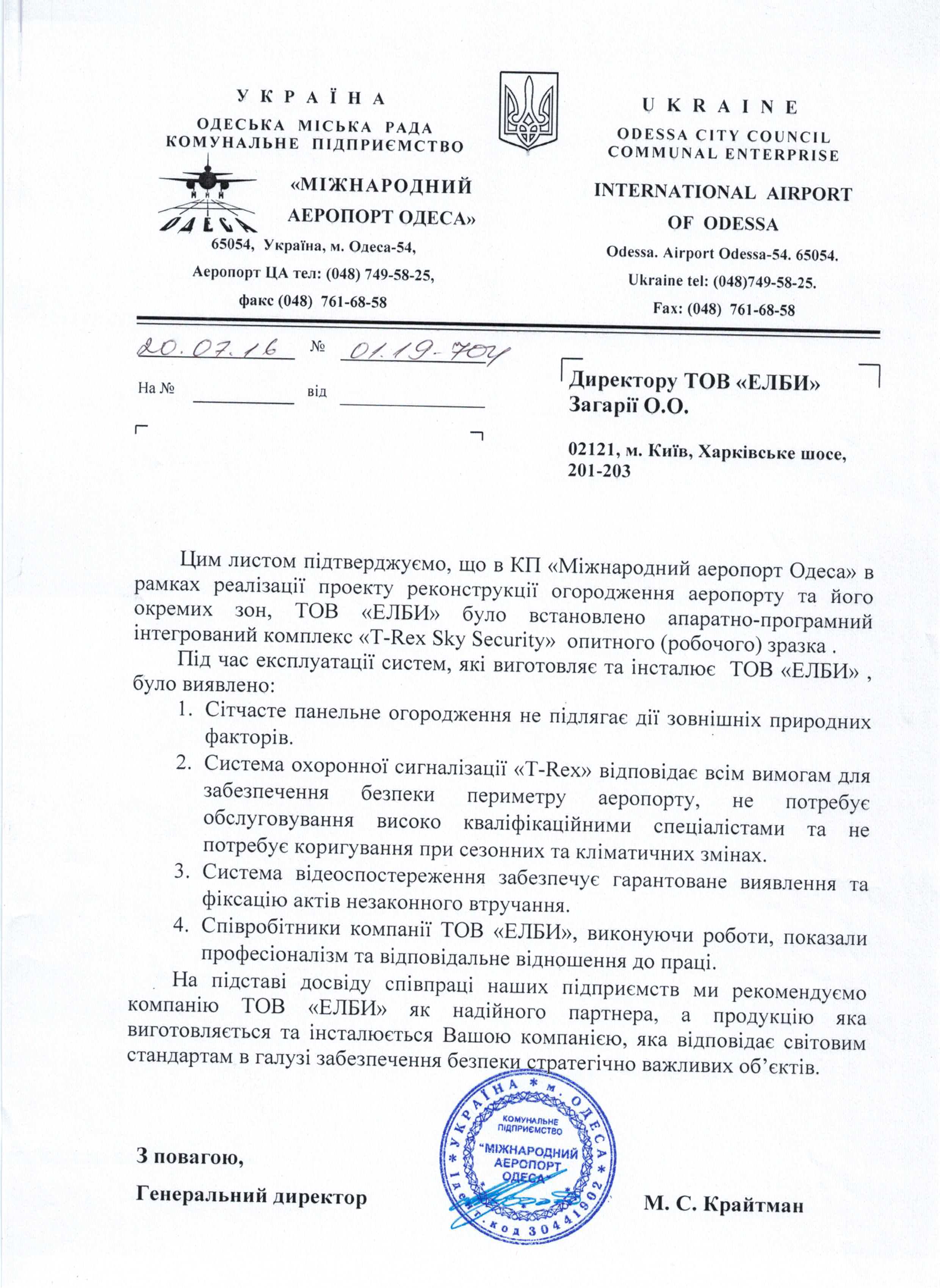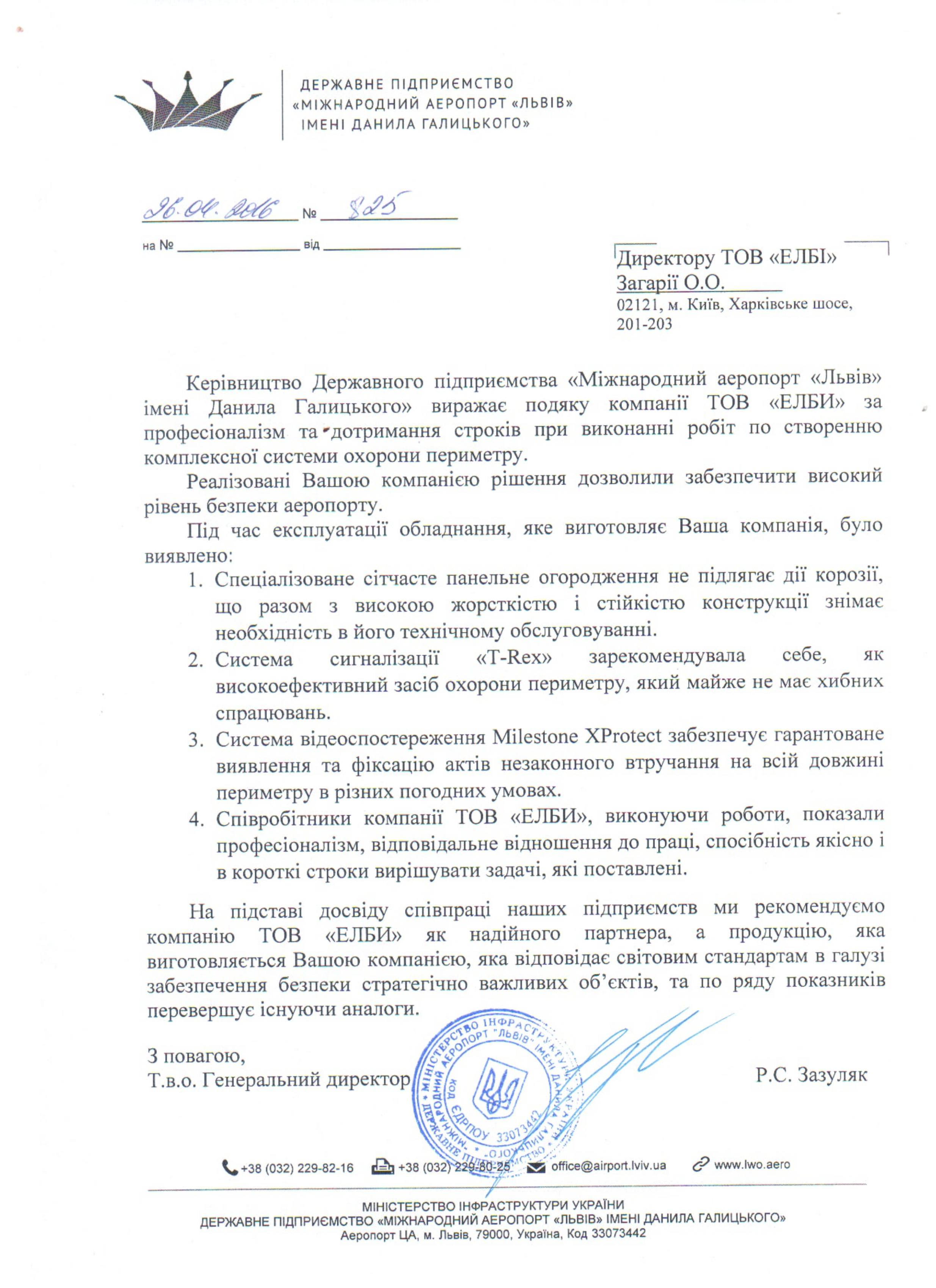Особливе місце в нашій роботі відведено створенню інтегрованих комплексів захисту периметра міжнародних і місцевих аеропортів та аеродромів. За минулі роки нами були реалізовані успішні проекти в аеропортах міст Києва, Львова, Одеси, Харкова.