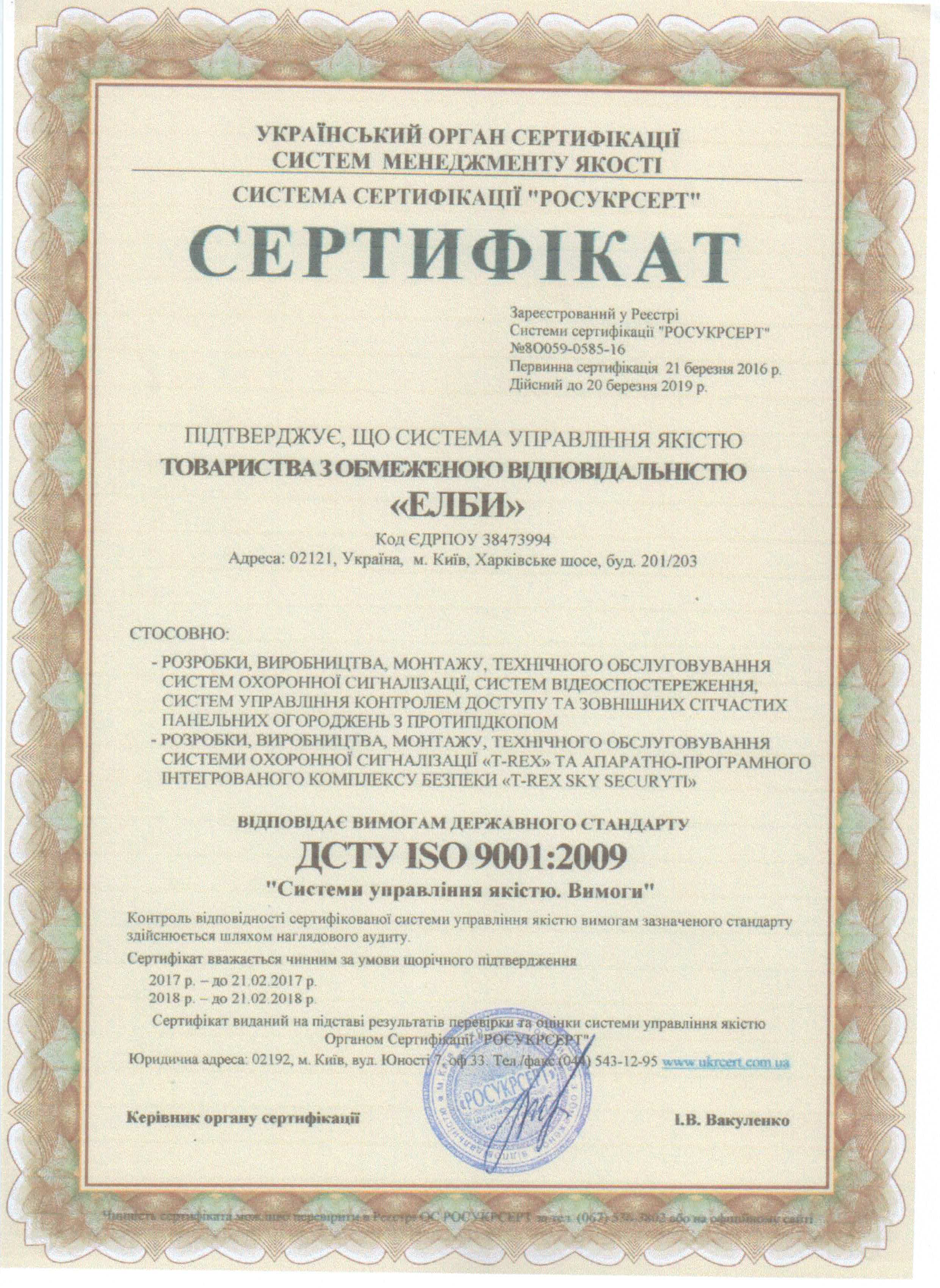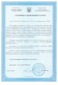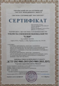 Обладнання, яке ми поставляємо, має сертифікати якості, а також сертифікат системи управління якістю ISO 9001.